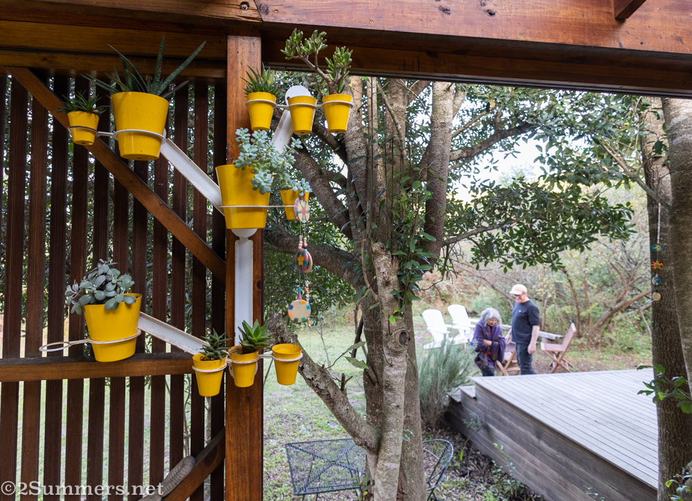 A cool sketch of the house by @theThinking_Hand.A view from the side portion of the deck. Thorsten and Bridget (who owns the house with her partner Maggie) are in the background.Behind the house is a small stream crossed by a kind of treehouse-bridge, which leads to a lookout point over the Buffeljag.The kitchen area (there is a larger sink just outside for big dish-washing jobs) and the ladder up to the loft, where the main bedroom is. These steps are surprisingly easy to climb.Same scene with the fireplace going. The house is very cozy on winter nights.The loft bedroom.There is enough space for four people to sleep comfortably on the couches downstairs.Bathroom. (There’s a lovely outdoor shower on the other side of the door.)The dining table makes a nice working space. There is also lots of space to work upstairs.We had one day that was warm enough to open the glass doors around the living area. (Photo: Thorsten Deckler)View from the couch.The back deck and pizza oven.