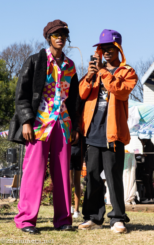 Frayznix was the MC for the day and his designs were also featured in the fashion show. See more of Frayznix’s fashion work here. Also follow his vintage clothing account.Samuel Muzumbi, who I have known since my earliest days in Joburg, selling his beautiful leatherwork at the market. You can find Samuel selling most days outside Xai Xai on 7th Street in Melville.Some of you might remember the post I wrote last year about the spinning and stance subculture in Joburg. I never get tired of watching these guys.This performer’s name is Njubulo.Fourteen-year-old Junior Gesh won the competition – here he is celebrating his victory.Thuto, a.k.a. @Ttee.Manhattan (left), won the prize for best dressed judge in the fashion show.