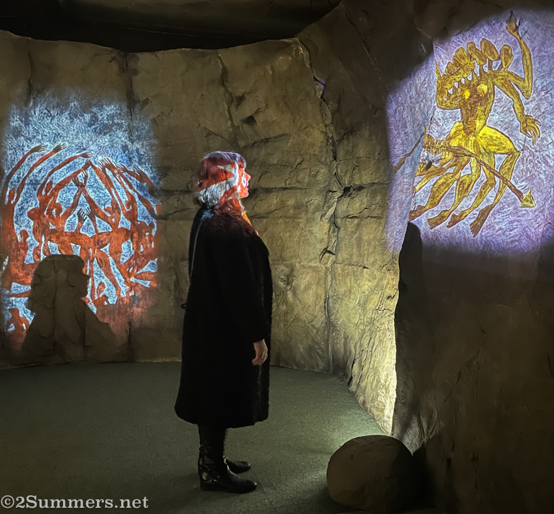 My second highlight was Lady Skollie’s visual arts show, Groot Gat, inspired by ancient Bushman paintings and the work of a contemporary Bushman artist named Dada. Groot Gat is displayed in a round, cave-like gallery on the bottom floor of the Monument.