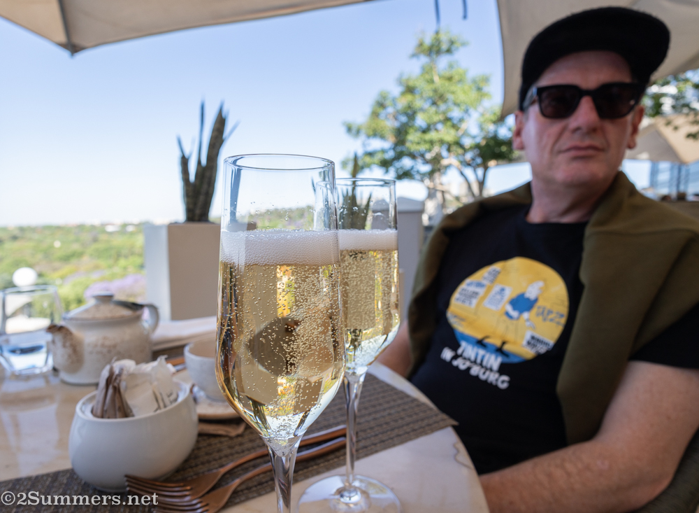 Thorsten and I arrived at Flames at 3:30 p.m. and settled in on the terrace overlooking the view. We started with tea; I ordered the Rooibos Cream Orange, which tastes like an orange creamsicle, and Thorsten ordered the Assam Bari. The tea was followed by bubbly and we decided we had no qualms about drinking both at the same time.