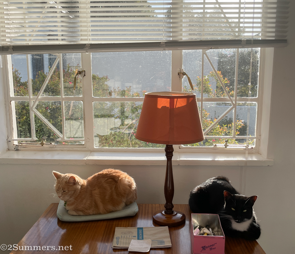 Brixie patiently tolerated Trixie’s harassment – Trixie had an irritating habit of hiding around corners and pouncing on Brixie as she walked past. It felt like Brixie was biding her time until she grew up and became Trixie’s equal. After a year of adjustment they were just starting to get along, or at least co-exist more peacefully, and sometimes even slept on the bed beside one another.