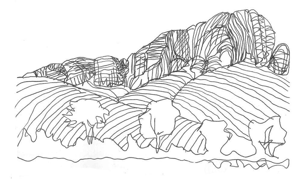 Views on the way up to the viewpoint.Thorsten looking for the vultures, which were actually off to the left somewhere.It was a great view either way. (Photo: Thorsten Deckler)Thorsten’s sketch of the vulture viewpoint.