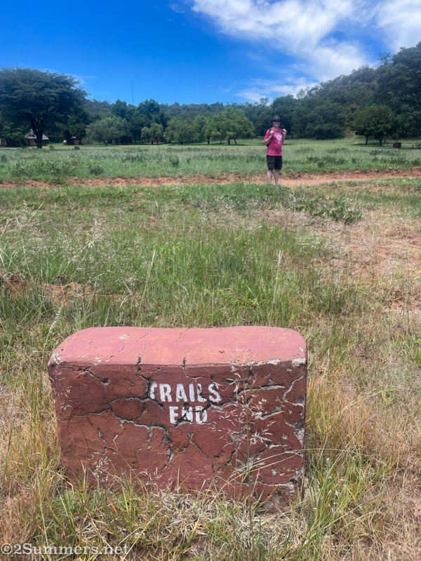 Setting out on Saturday morning.We saw very few other humans so Thorsten is the star of this show.Some impala we met along the way.Blesbok.A big herd of eland, the world’s largest antelope, with a couple of ostriches in the background. (Sorry, I forgot my long lens on this hike so all of my wildlife shots are very distant.)More distant wildlife.