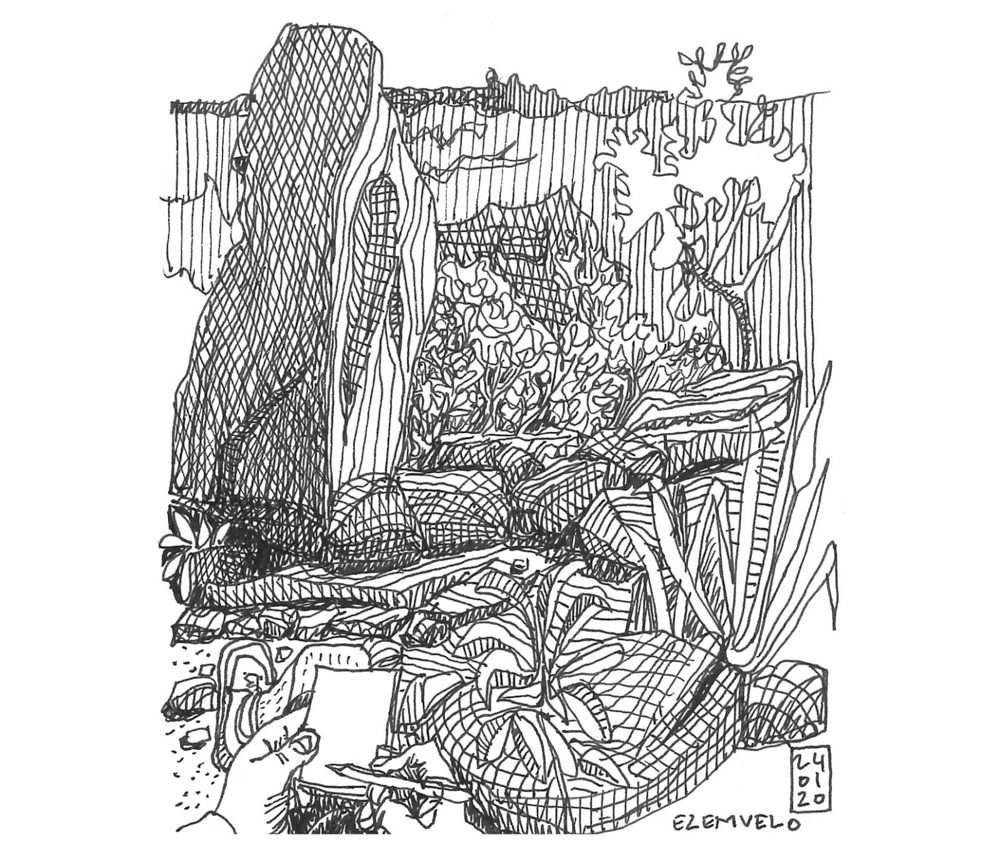 A sketch by @theThinking_Hand (including his own hands), drawn somewhere in Ezemvelo.