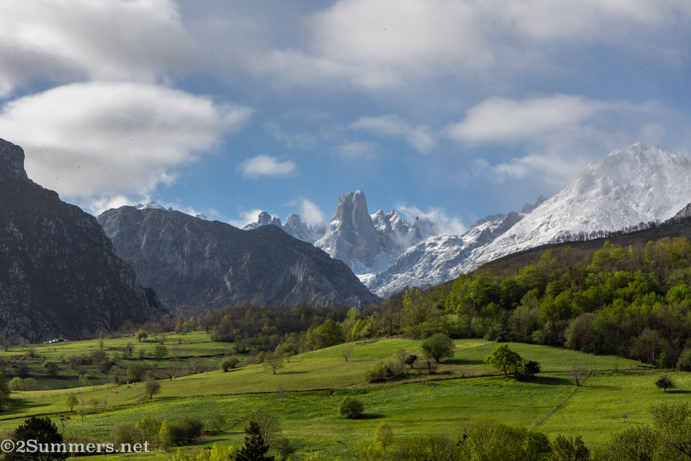Also, I have rarely traveled for so long in such variable weather conditions. Europe in early spring – even Southern Europe – is not for the faint of heart. Here I am standing in a very beautiful but very rainy and cold square in San Sebastian, Spain. (Photo: Michelle Stern)Hiking in the Picos de Europa on a rare sunny(ish) day. (Photo: Michelle Stern)