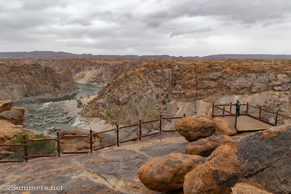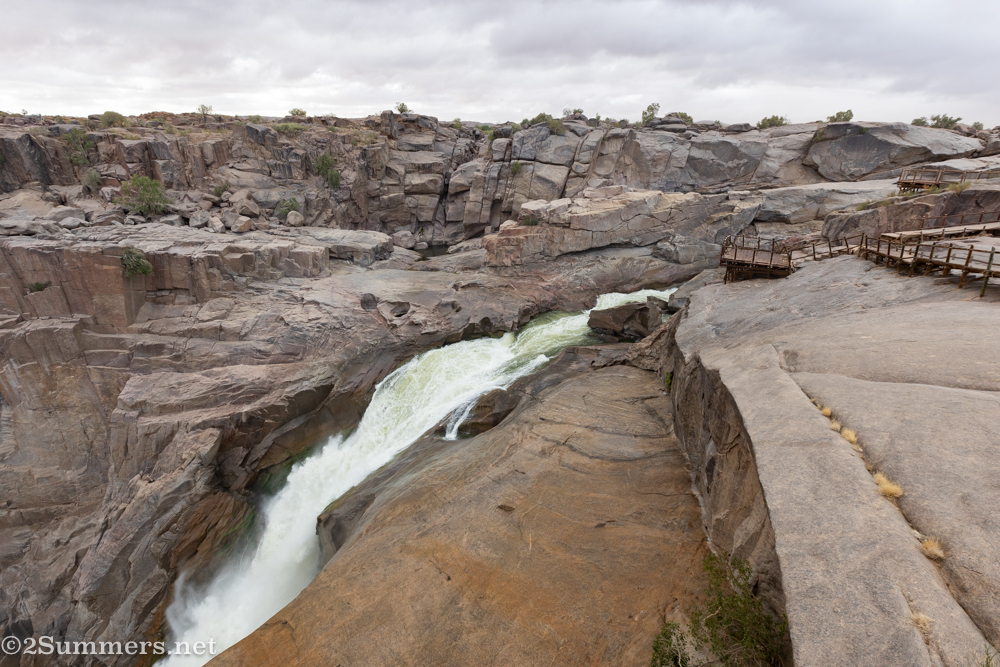 Augrabies Falls, whose name comes from the indigenous word for "Place of Great Noise", in July. (The wooden decks shown in this photo were closed due water damage.) It was beautiful, to be sure, but check out this video showing what the falls look like in February. Hopefully I’ll make it back someday to see that.