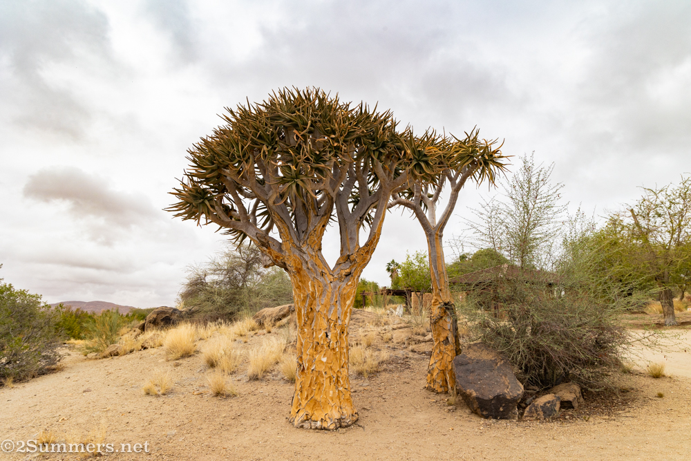 Another look at the falls.Augrabies is famous for its kokerboom (quiver) trees. I spotted these in the main camp near the falls.Walking on Augrabies’ famous "Moon Rock". The rock is huge and we walked a kilometer or so from the parking area to get to this cool view. Unfortunately it was the coldest and windiest moment of our visit and we even got rained on (unusual at this time of year).Thorsten sketches at the Ararat viewpoint, which is just around the bend from the Oranjekom viewpoint. This was my favorite spot in the park.Thorsten’s Ararat viewpoint sketch, which he later gave me as a birthday gift. The Gorge Cottage appears in the top-left corner.It was a lovely walk around the viewpoint.I love this photo but I was also very nervous that my boyfriend was going to tumble to his death.The sketch he risked his life for.