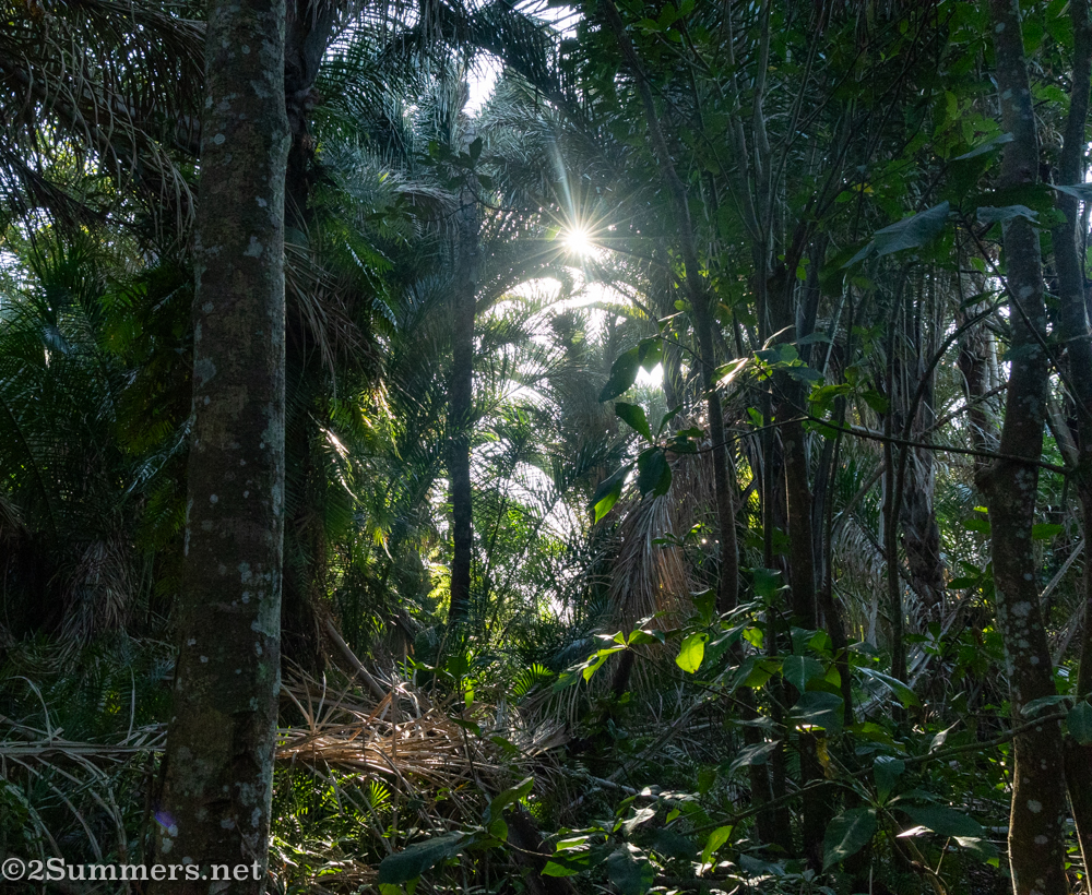 The longer hike started at the boat launch parking lot and wound through some tropical forest and an interesting mangrove forest, complete with slimy mud, then along the river estuary (where there was some unsightly litter but only in one small part) and out onto the beach. The AllTrails app was a little confusing – it kept telling us we had veered off course when we hadn’t – but it was useful for figuring out where to exit the beach and get back to the parking lot (there was no sign).