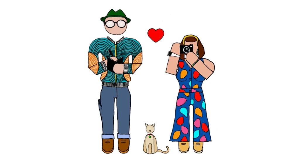 The Blogitects: Thorsten, the architect, with his sketchbook and me, the blogger, with my camera, plus Trixie the cat. Thorsten drew the picture on his iPad; the design of the figures is inspired by the Frankie Pappas Persona Project.
